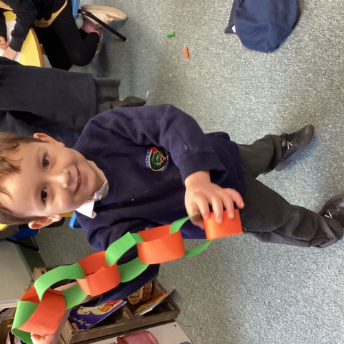 Today we thought about how we all celebrate Christmas and the different activities or traditions we all do. We then looked at what Christians might do to celebrate before having a go at taking part in some of those activities ourselves. We retold the nativity story, made cards, made decorations, created paperchains and sung some Christmas songs.